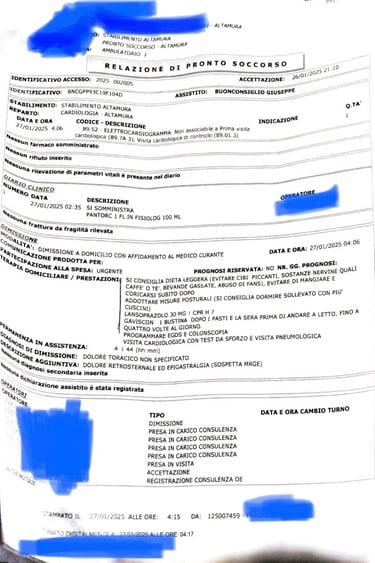 Is there anything wrong ?! Absolutely, correct! Take a look! There are missing medical records, I did into public and national hospital (Altamura, Bari, Venosa). According to them and who really is behind my attempts to kill me in all the possible ways - obscuring all the truths - I never stayed! It’s a form of “advertising”. As you can see in the pictures below, the last medical check that the national system recognise is on May 2024. Instead, as you can better to see, I took many other medical checks after that date (abroad and in the country), especially in Altamura (BA) with two police men and a friend of mine as testimonies. How ever could these medical checks have been deleted ?! Ehhhhhhh…..maybe, there were something clearly undeniable!