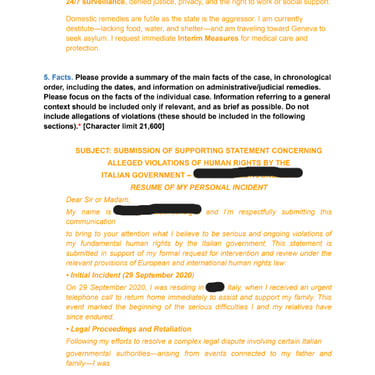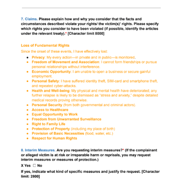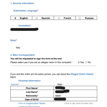 SUBMISSION FORM OF INDIVIDUAL COMMUNICATIONS TO TREATY BODIES