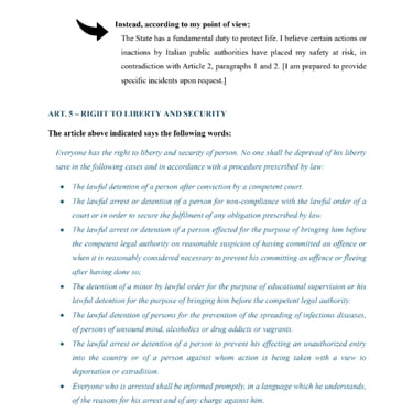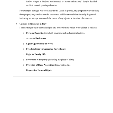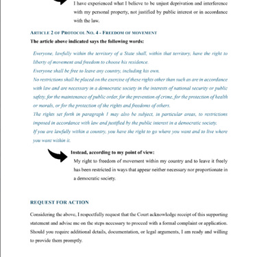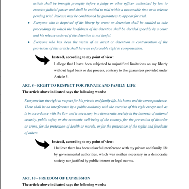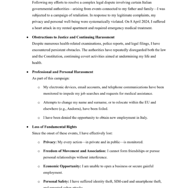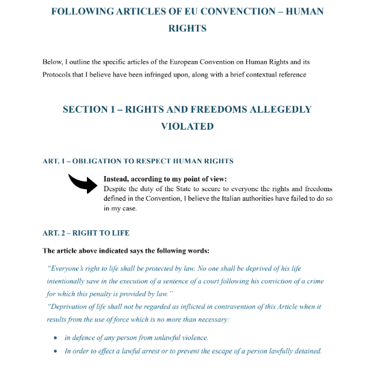 SUBMISSION OF SUPPORTING STATEMENT CONCERNING ALLEGED VIOLATIONS OF HUMAN RIGHTS BY THE ITALIAN GOVERNMENT